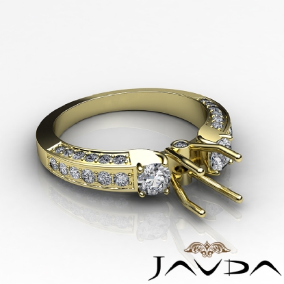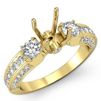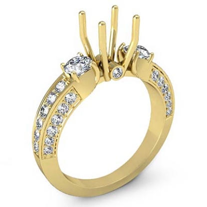 Round Diamond 3 Stone Engagement Ring Bezel 18k Gold Semi Mount (1.15Ct. tw.)