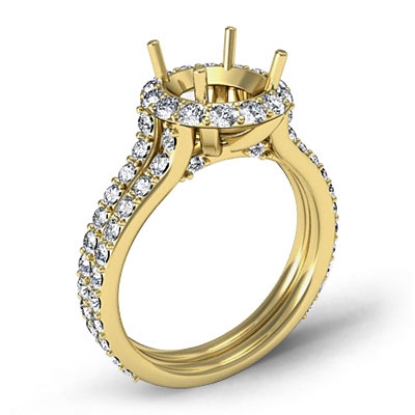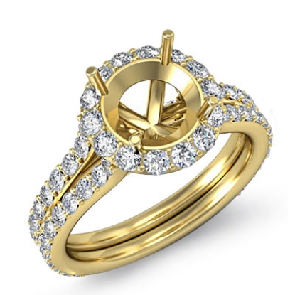 Diamond Engagement Ring Round Semi Mount Halo Pave Setting 14k Gold (1.3Ct. tw.)