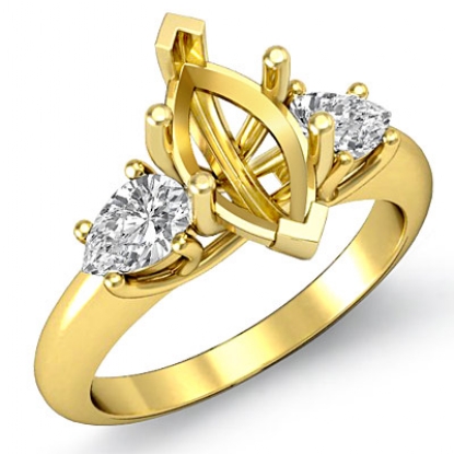 Pear Cut Diamond 3 Stone Engagement Ring Setting for Marquise Semi Mount made in 14k Gold Yellow. (0.5Ct. tw.)