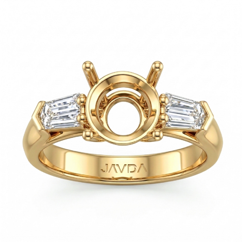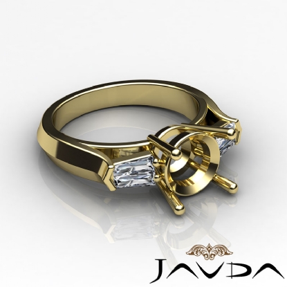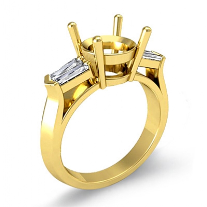 Tappered Baguette Diamond 3 Stone Engagement Ring Setting For Round Diamond Semi Mount made in 14k Gold Yellow. (0.5Ct. tw.)