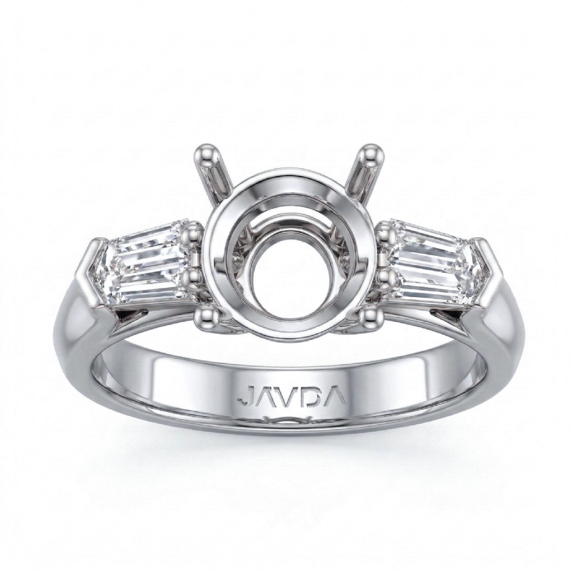 Tappered Baguette Diamond 3 Stone Engagement Ring Setting For Round Diamond Semi Mount made in Platinum 950. (0.5Ct. tw.)