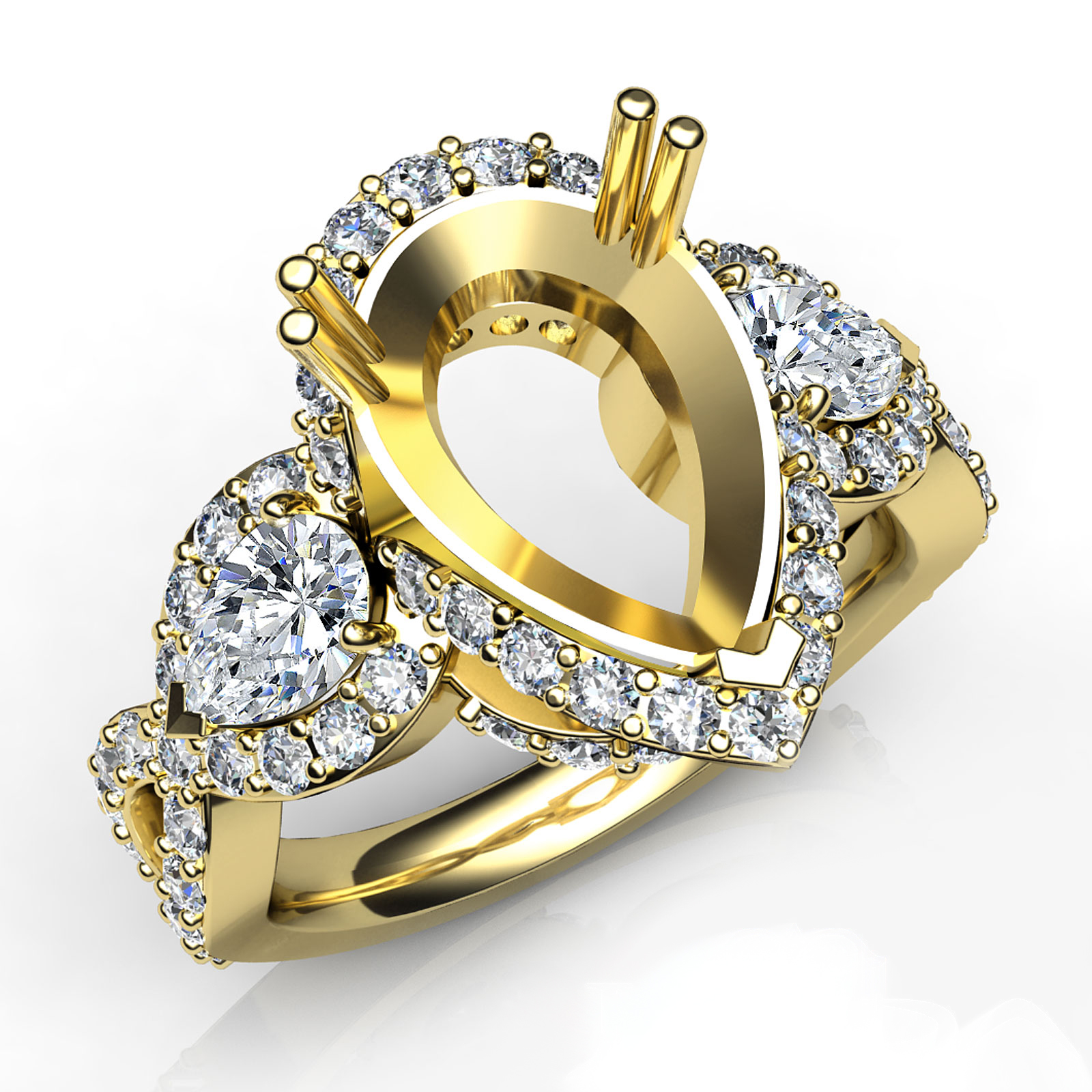 Pear Diamond 3 Stone Anniversary Ring 14k Gold Semi Mount (1.4Ct. tw.)