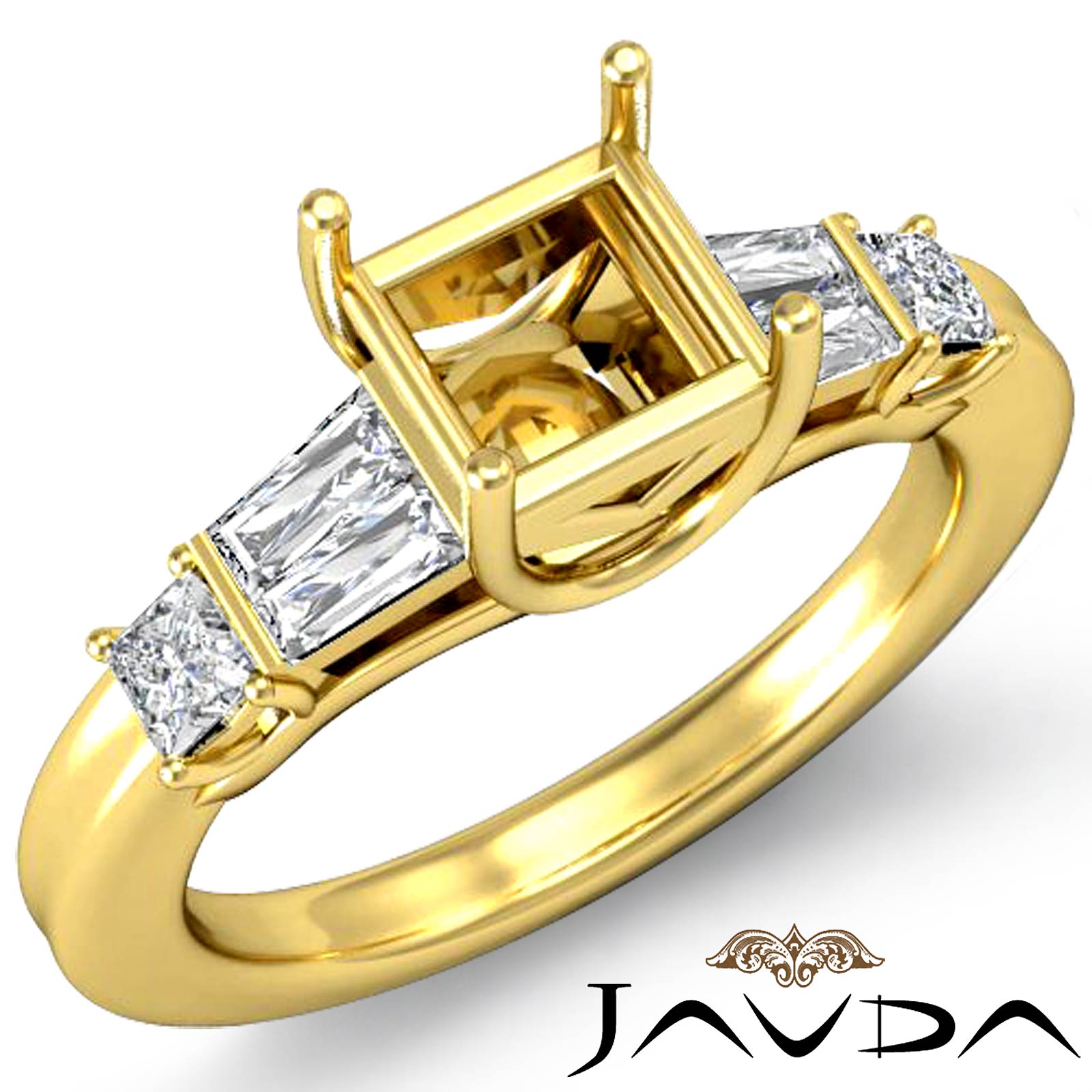 Princess Diamond & 0.30 carat Baguette Diamond 3 Stone Engagement Semi Mount Ring Setting made in 14k Gold Yellow. (0.45Ct. tw.)