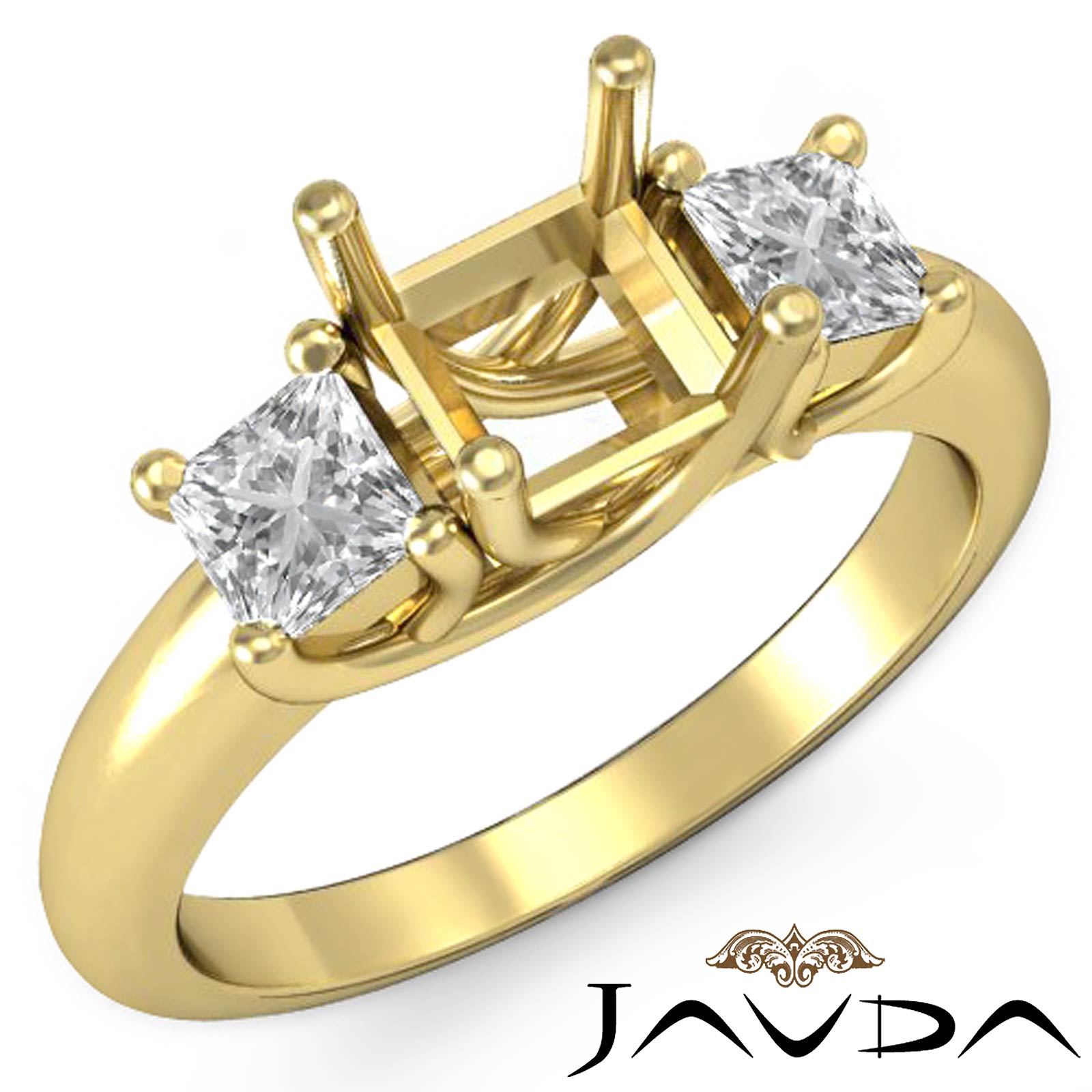 Diamond 3 Stone Engagement Ring in Criss Cross Prong Setting made in 14k Gold Yellow for Princess Cut in a Semi Mount. (0.8Ct. tw.)