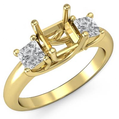 3 Stone Princess Diamond Engagement Ring Semi Mount 18k Gold (0.8Ct. tw.)