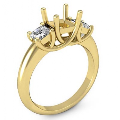 Diamond 3 Stone Engagement Ring in Criss Cross Prong Setting made in 18k Gold Yellow for Princess Cut in a Semi Mount. (0.8Ct. tw.)