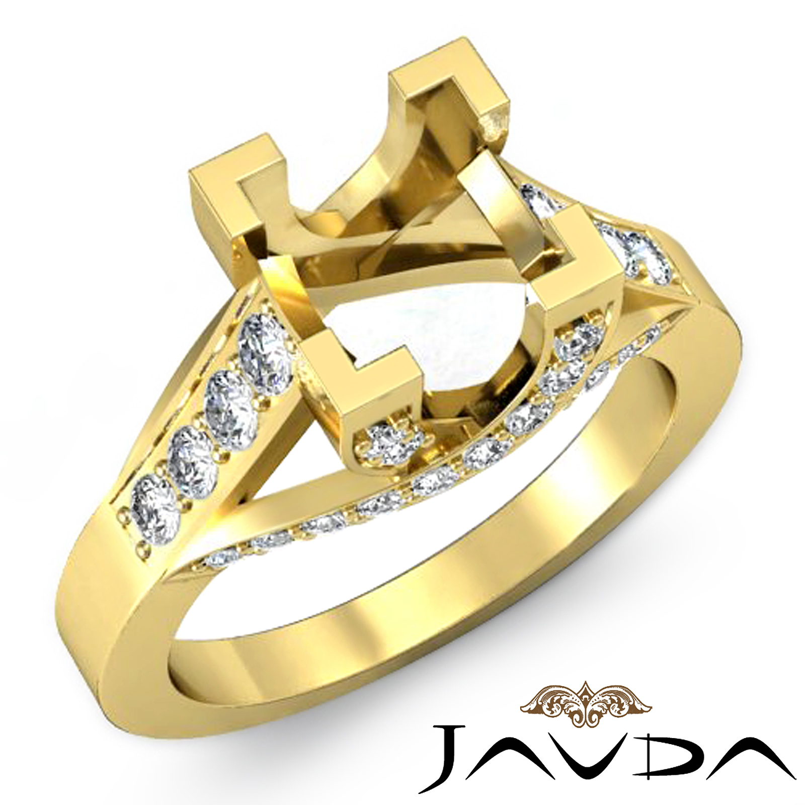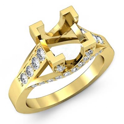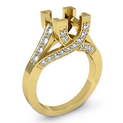 Exquisite in design & made in enduring 14k Gold Yellow, this diamond engagement ring features a princess semi mount along with of prong set round diamonds on a the breath-taking shank. (0.8Ct. tw.)