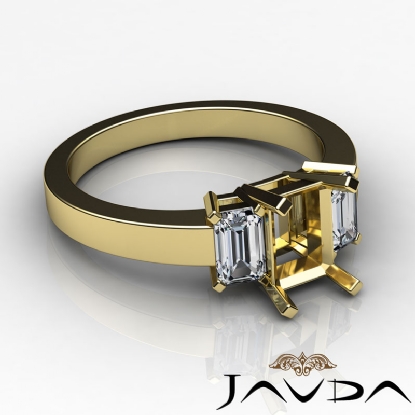 3 Stone Emerald Shape Diamond Semi Mount Ring 18k Gold (0.4Ct. tw.)