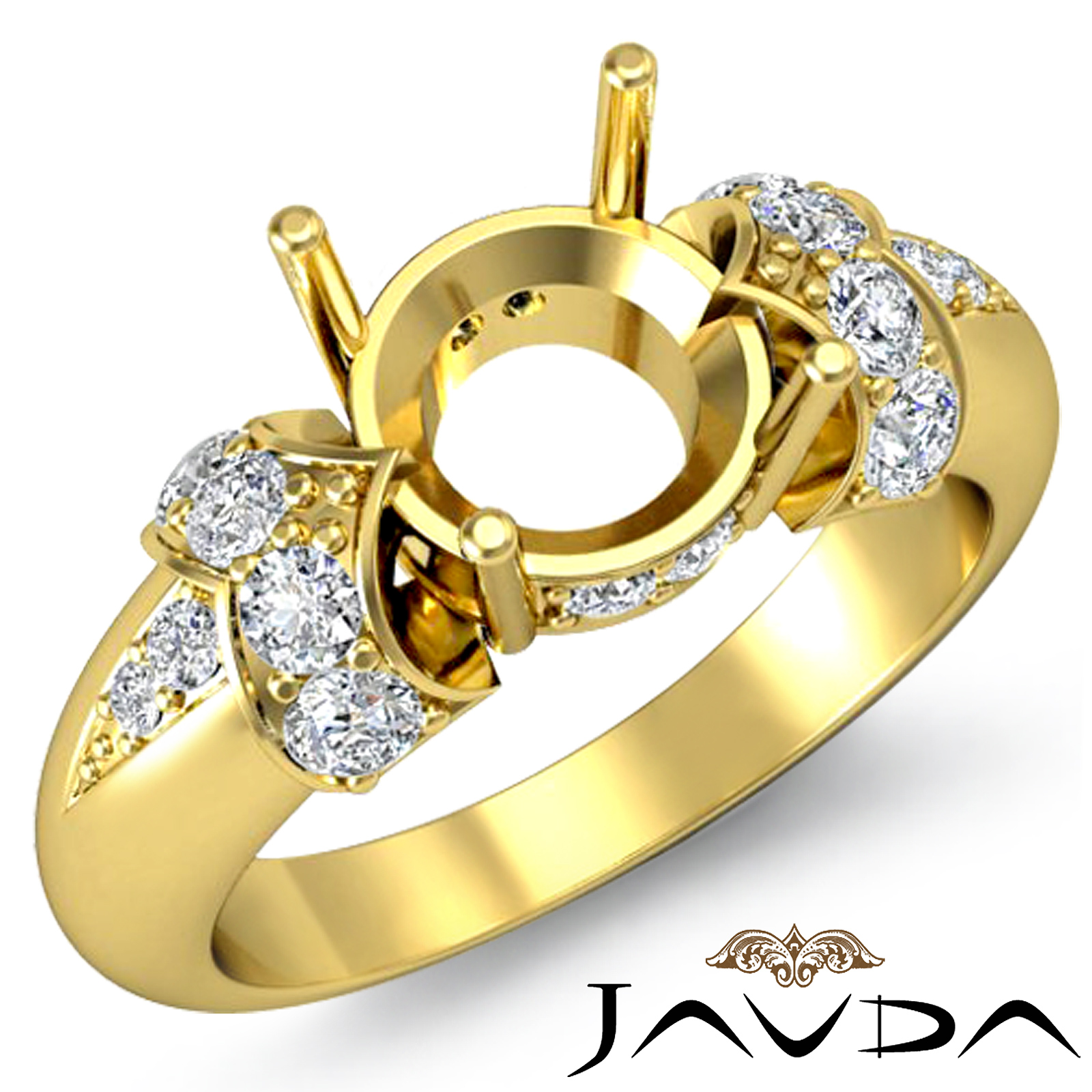 An elegant creation! This 18k Gold Yellow women's diamond engagement ring features a round semi mount and of prong set round diamonds dazzling the shank. (0.35Ct. tw.)