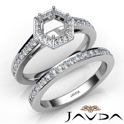 Round Pave Diamond Engagement Semi Mount Ring Bridal Sets 18k W Gold (1Ct. tw.)
