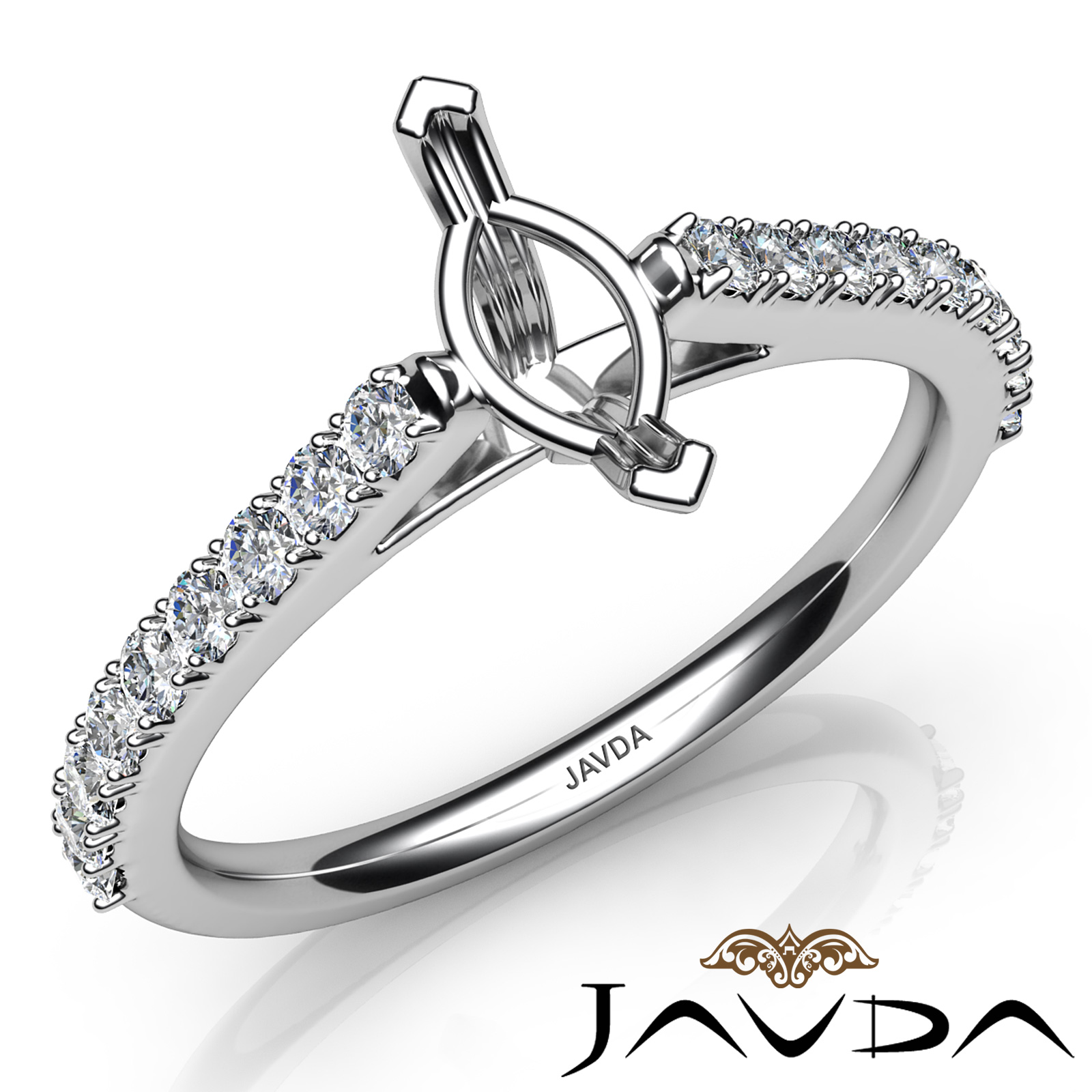 Round Diamond Women Engagement & Anniversary Solid Ring made in Platinum 950. Diamonds are set in Double Prong Setting for Marquise Cut in a Semi Mount. (0.3Ct. tw.)