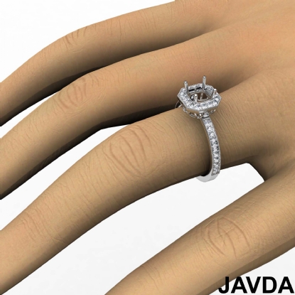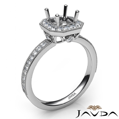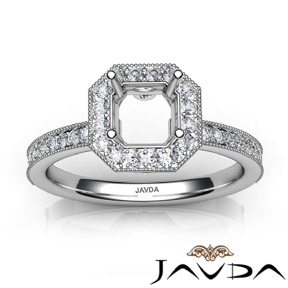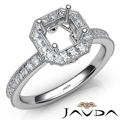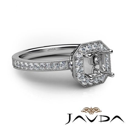 Halo Pave Set Diamond Engagement Platinum Asscher Semi Mount Ring (0.5Ct. tw.)