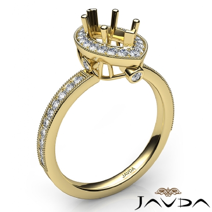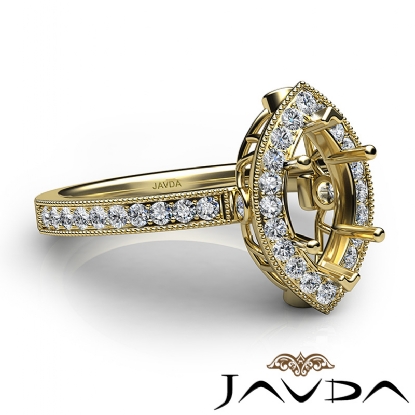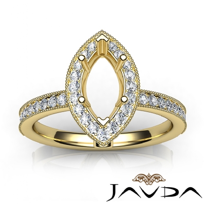 Halo Pave Set Diamond Engagement 14k Gold Marquise Semi Mount Ring (0.5Ct. tw.)