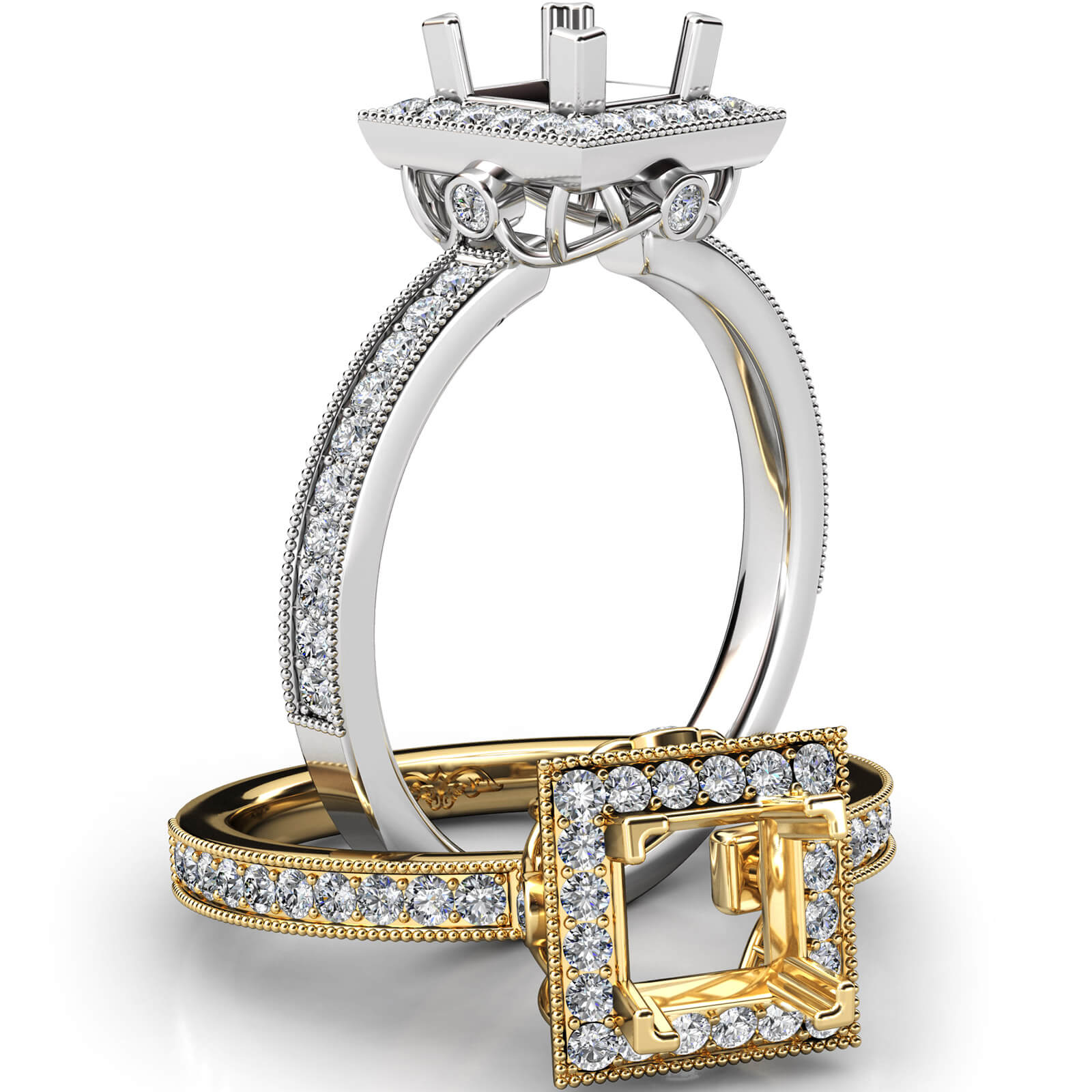 Halo Pave Set Diamond Engagement 18k W Gold Princess Semi Mount Ring (0.5Ct. tw.)