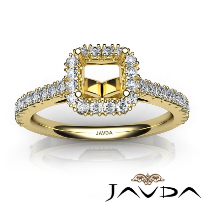 French Cut Pave Set Diamond Engagement Asscher Semi Mount Ring 18k Gold (1Ct. tw.)