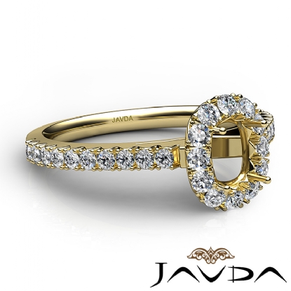 Round Diamond Women Engagement & Anniversary Solid Ring made in 14k Gold Yellow. Diamonds are set in French Cut Pave Setting for Cushion Cut in a Semi Mount. (1Ct. tw.)