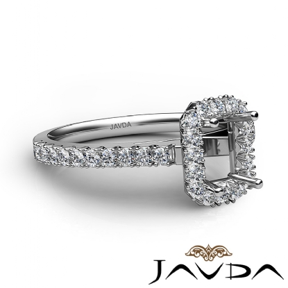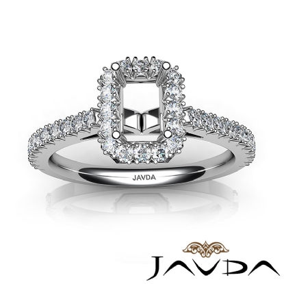 French Cut Pave Set Diamond Engagement Emerald Semi Mount Ring Platinum (1Ct. tw.)