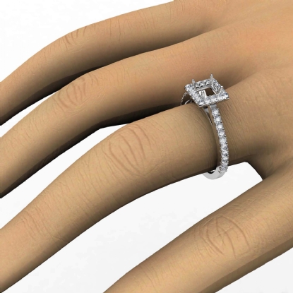 Round Diamond Women Engagement & Anniversary Solid Ring made in Platinum 950. Diamonds are set in French Cut Pave Setting for Princess Cut in a Semi Mount. (1Ct. tw.)