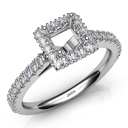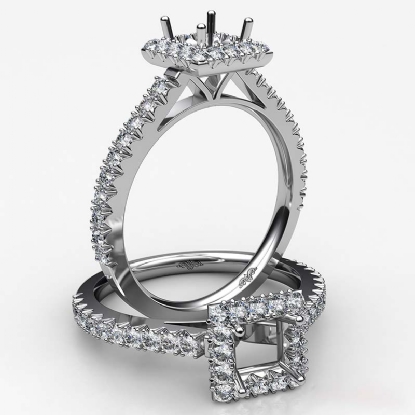 French Cut Pave Set Diamond Engagement Princess Semi Mount Ring Platinum (1Ct. tw.)