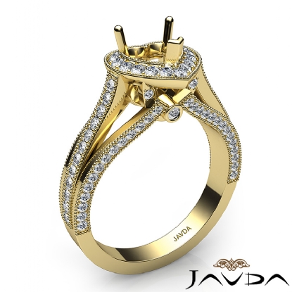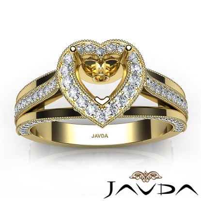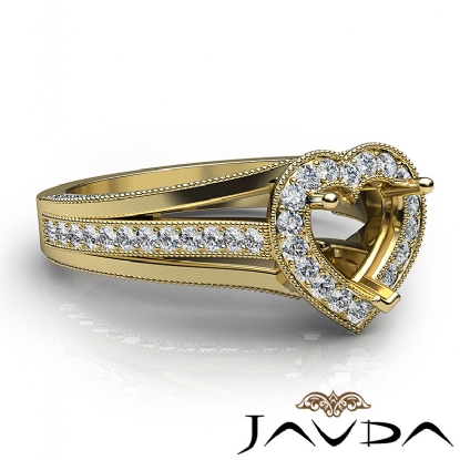 Halo Pave Diamond Engagement Heart Semi Mount Millgrain Ring 18k Gold (0.9Ct. tw.)