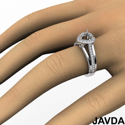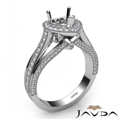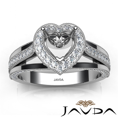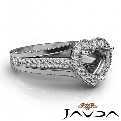 Halo Pave Diamond Engagement Heart Semi Mount Millgrain Ring Platinum (0.9Ct. tw.)