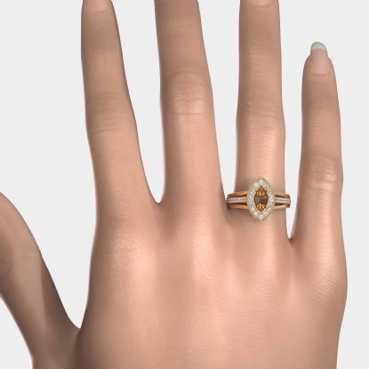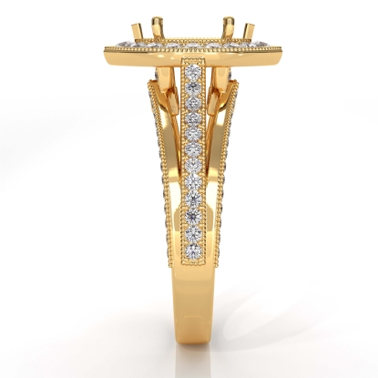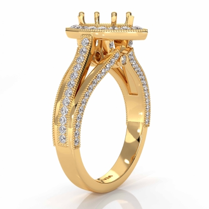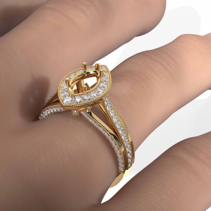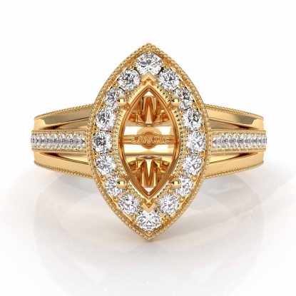 Round Diamond Women Engagement & Anniversary Solid Millgrain Ring made in 18k Gold Yellow. Diamonds are set in Halo Pave Setting for Marquise Cut in a Semi Mount. (0.92Ct. tw.)