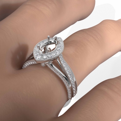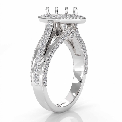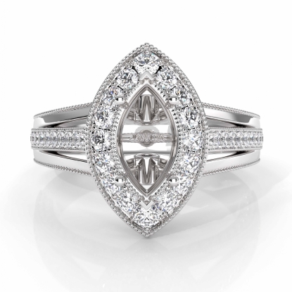 Halo Pave Diamond Engagement Marquise SemiMount Millgrain Ring Platinum (0.92Ct. tw.)