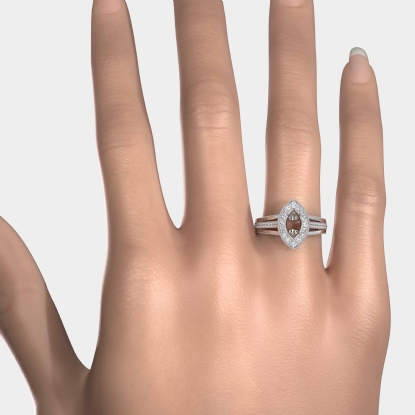 Round Diamond Women Engagement & Anniversary Solid Millgrain Ring made in Platinum 950. Diamonds are set in Halo Pave Setting for Marquise Cut in a Semi Mount. (0.92Ct. tw.)