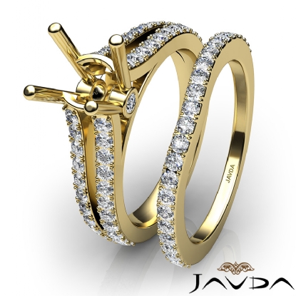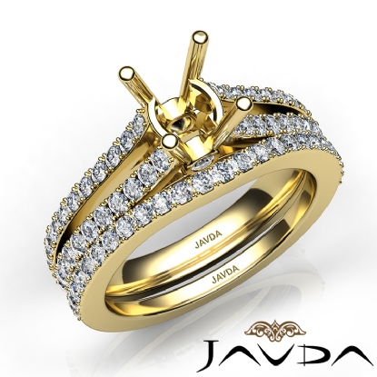 Split Shank Diamond Engagement Ring Round Bridal Set 18k Gold Semi Mount (1.1Ct. tw.)