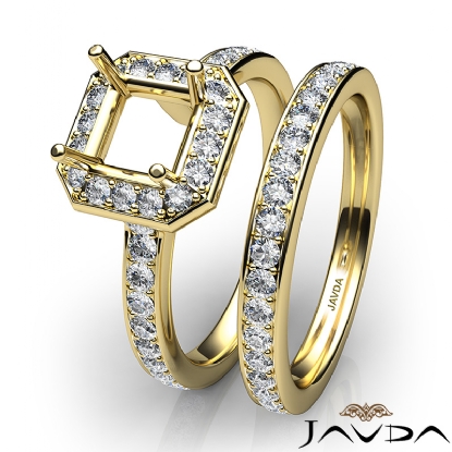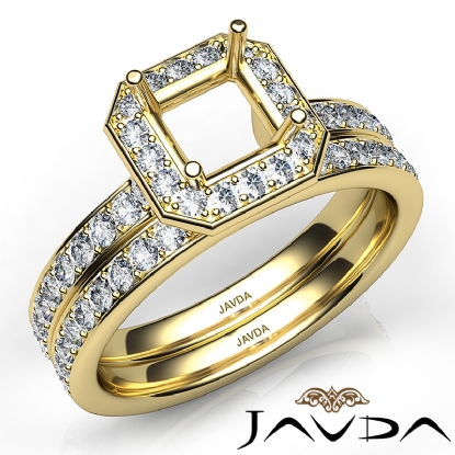 Asscher Halo Diamond Semi Mount Engagement Ring Bridal Set 18k Gold (0.95Ct. tw.)