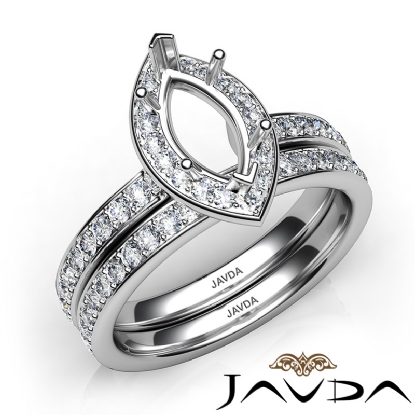 Marquise Halo Diamond SemiMount Engagement Ring Bridal Set 18k W Gold (0.95Ct. tw.)