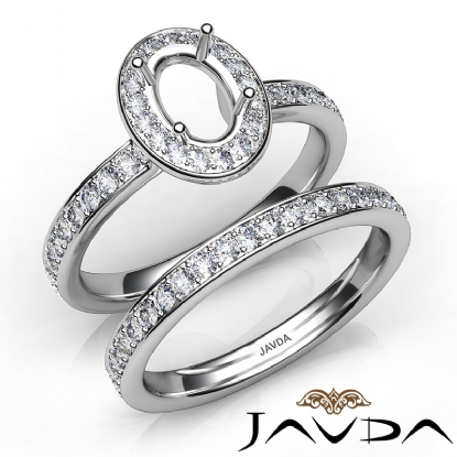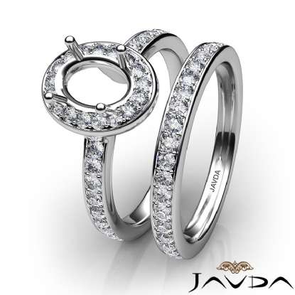 Oval Halo Diamond Semi Mount Engagement Ring Bridal Set Platinum (0.95Ct. tw.)