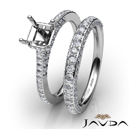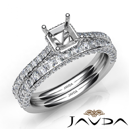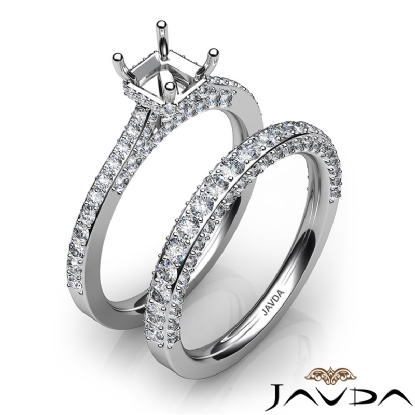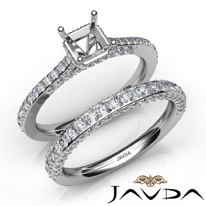 Pave Diamond Engagement Ring Asscher Semi Mount Bridal Set 18k W Gold (1.65Ct. tw.)