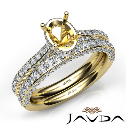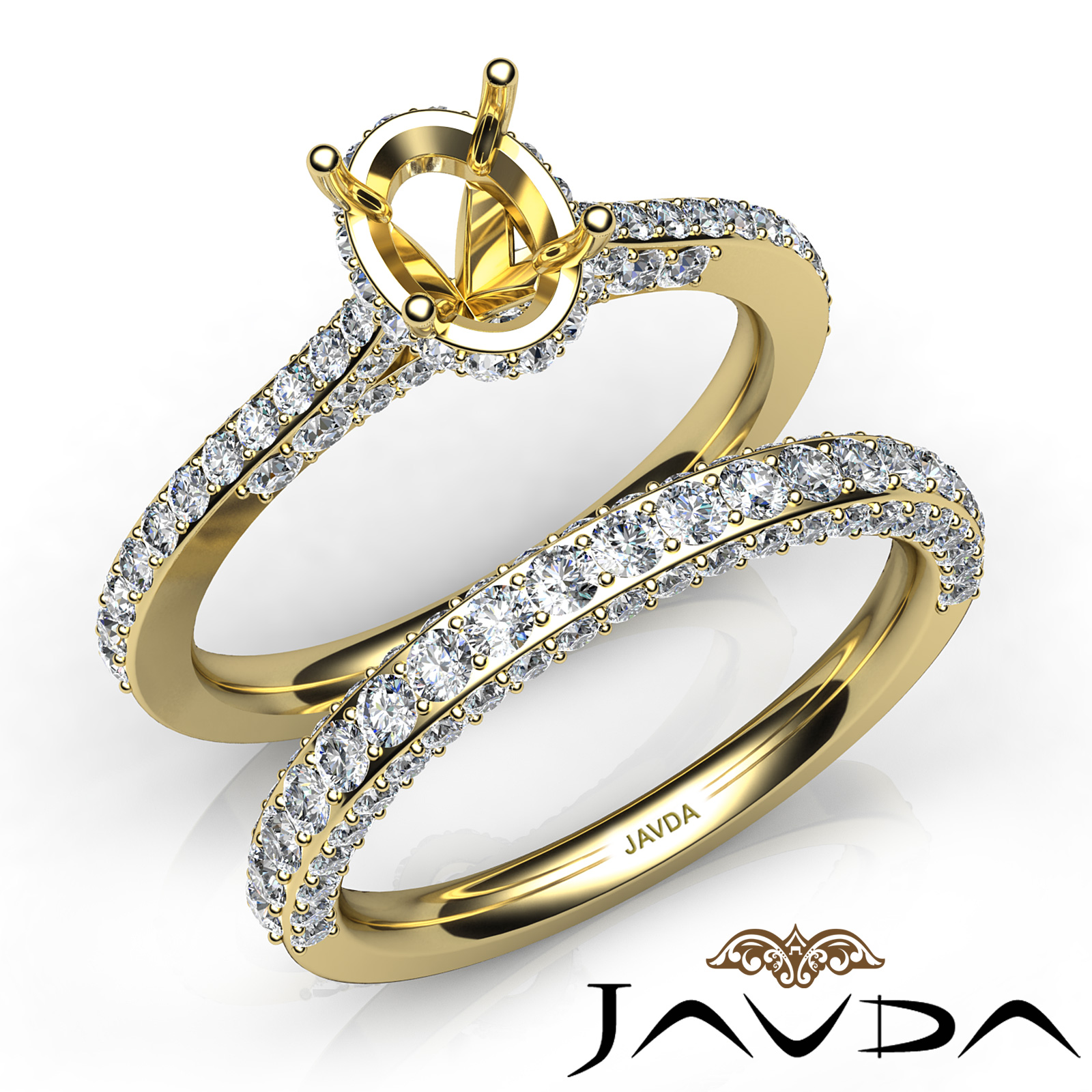 Pave Diamond Engagement Ring Oval Semi Mount Bridal Set 18k Gold (1.65Ct. tw.)