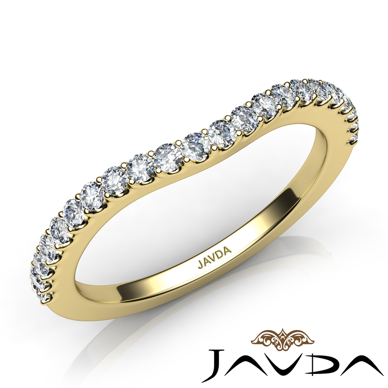 Round Prong Set Diamond Women's Half Wedding Band Made in 18k Gold Yellow 2mm Ring. Ideal Matching band for Item # R22046RC Round Setting. (0.3Ct. tw.)