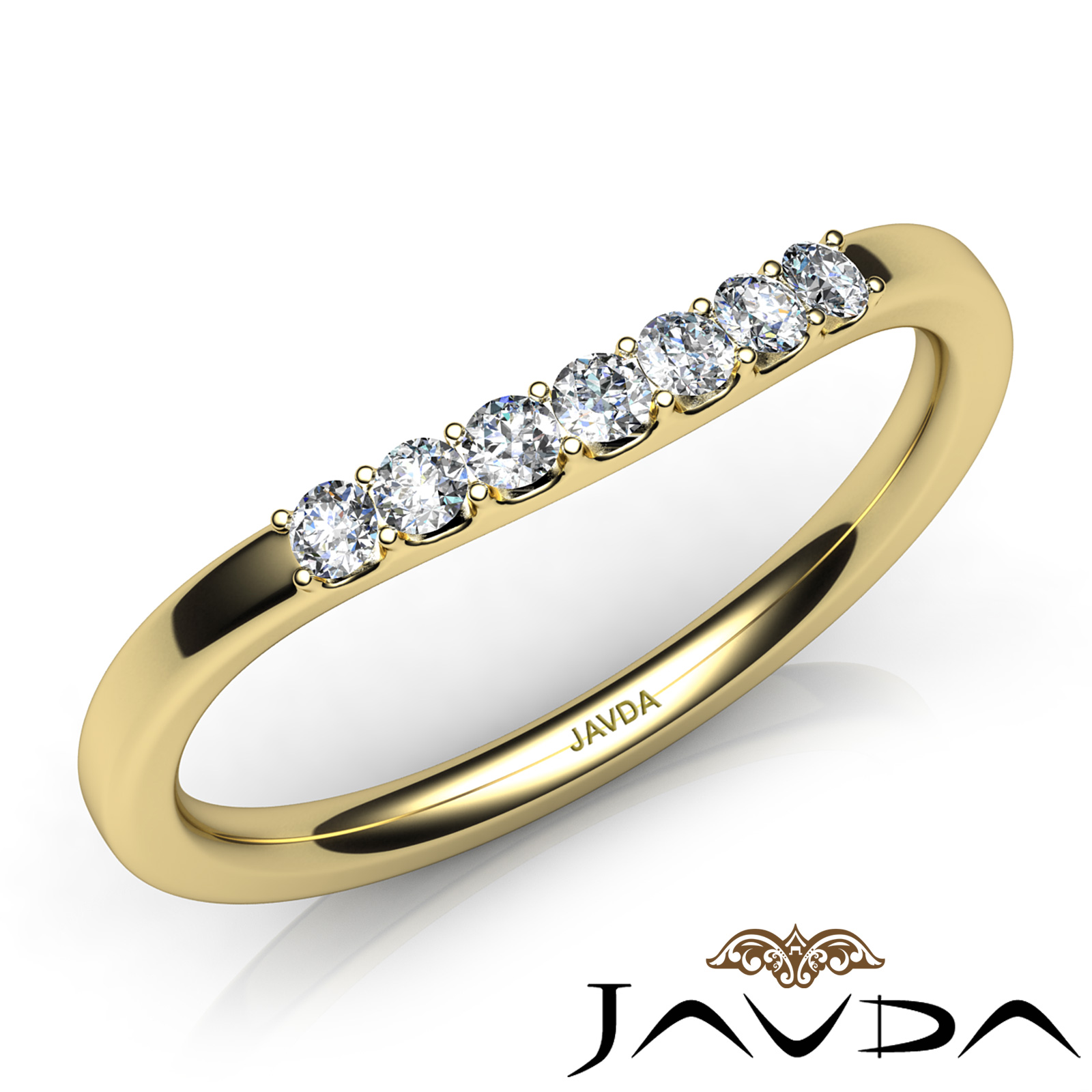 Round Prong Set Diamond Women's Half Wedding Band Made in 18k Gold Yellow 1.6mm Ring. Ideal Matching band for Item # R22059RC. (0.2Ct. tw.)