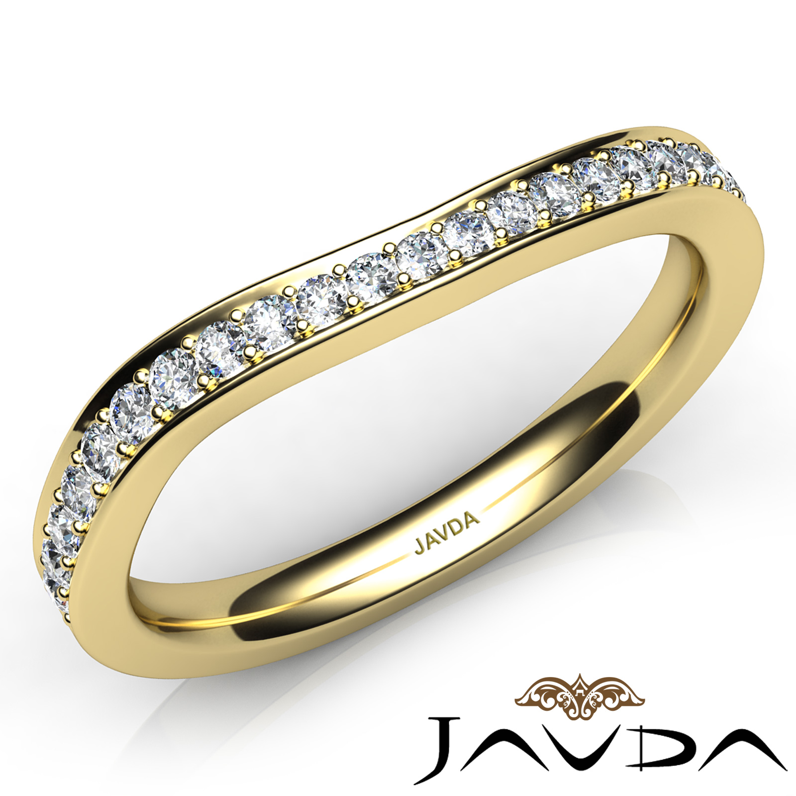 Round Pave Set Diamond Women's Half Wedding Band made in 18k Gold Yellow 2.4mm Ring, Ideal Matching Band for Engagement Setting # R21905R. (0.52Ct. tw.)