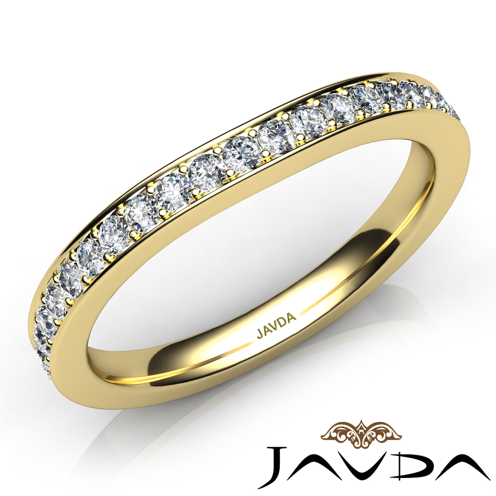 Round Pave Set Diamond Women's Half Wedding Band made in 18k Gold Yellow 2.3mm Ring, Ideal Matching Band for Engagement Setting # R22051R. (0.35Ct. tw.)