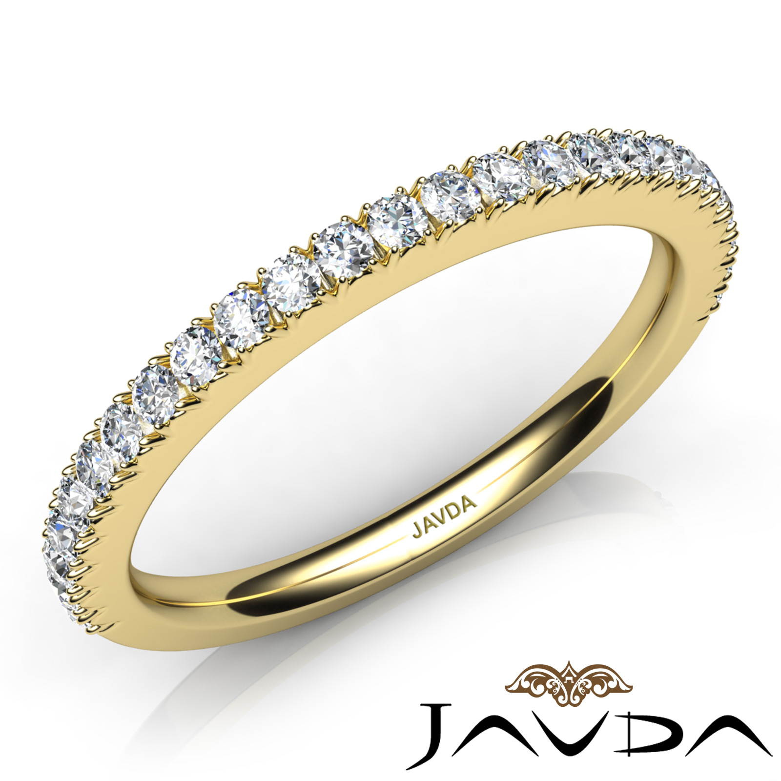 Round French V Cut Pave Set Diamond Women's Half Wedding Band made in 14k Gold Yellow 1.9mm Ring, Ideal Matching Band for Engagement Setting # R22057R. (0.5Ct. tw.)