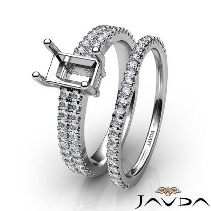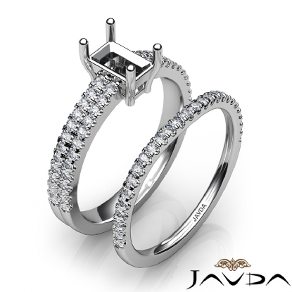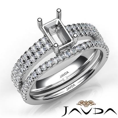Diamond Engagement Ring Emerald Semi Mount U Cut Bridal Set 18k W Gold (0.8Ct. tw.)