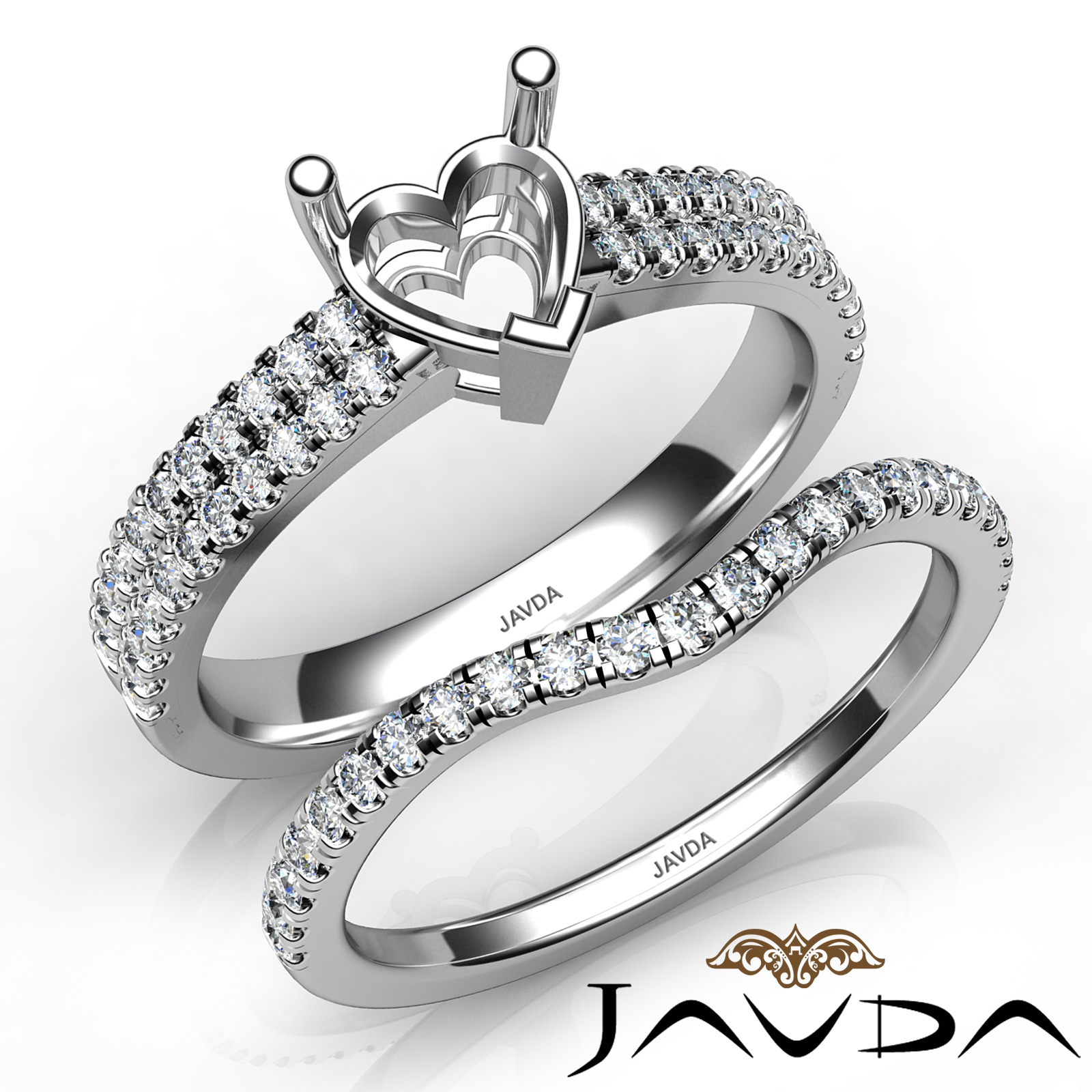 Diamond Engagement Ring Heart Semi Mount U Cut Bridal Set Platinum (0.8Ct. tw.)