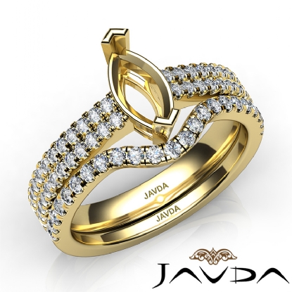 Breathtaking in design, this 14k Gold Yellow marquise semi mount engagement ring comes with a matching band. It features . round U Split Cut Prong set diamonds in shank. This bridal set will be the perfect choice. (0.8Ct. tw.)