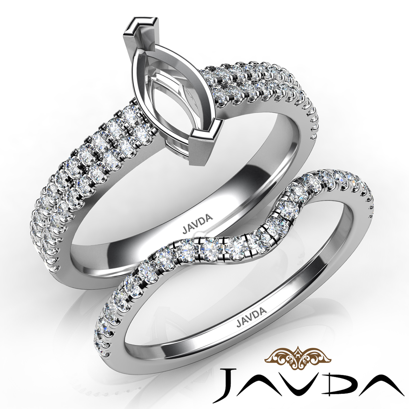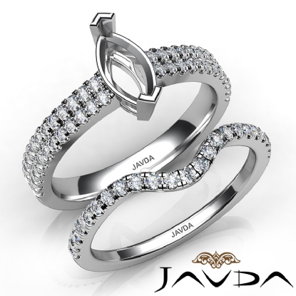 Diamond Engagement Ring Marquise Semi Mount U Cut Bridal Set Platinum (0.8Ct. tw.)