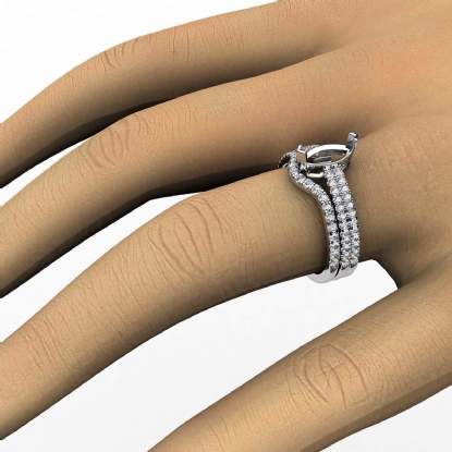 Breathtaking in design, this Platinum 950 marquise semi mount engagement ring comes with a matching band. It features . round U Split Cut Prong set diamonds in shank. This bridal set will be the perfect choice. (0.8Ct. tw.)