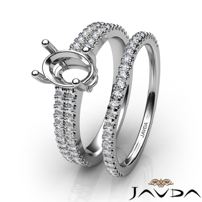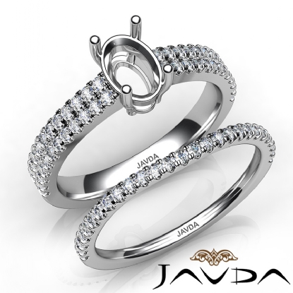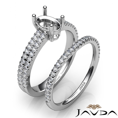 Diamond Engagement Ring Oval Semi Mount U Cut Bridal Set 18k W Gold (0.8Ct. tw.)