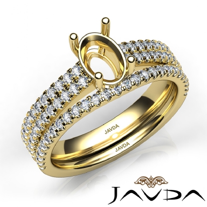 Diamond Engagement Ring Oval Semi Mount U Cut Bridal Set 18k Gold (0.8Ct. tw.)