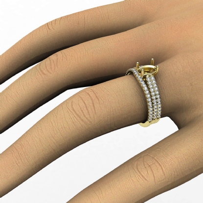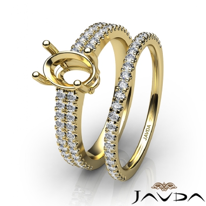 Breathtaking in design, this 18k Gold Yellow oval semi mount engagement ring comes with a matching band. It features . round U Split Cut Prong set diamonds in shank. This bridal set will be the perfect choice. (0.8Ct. tw.)