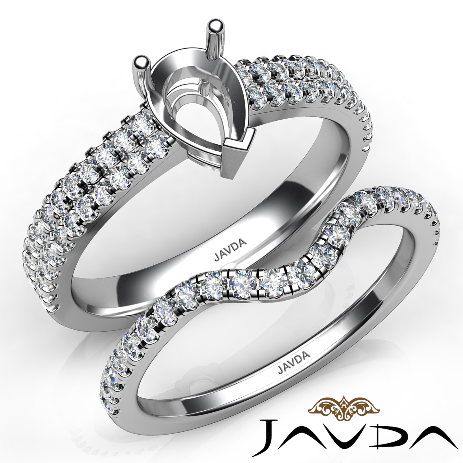 Diamond Engagement Ring Pear Semi Mount U Cut Bridal Set 18k W Gold (0.8Ct. tw.)