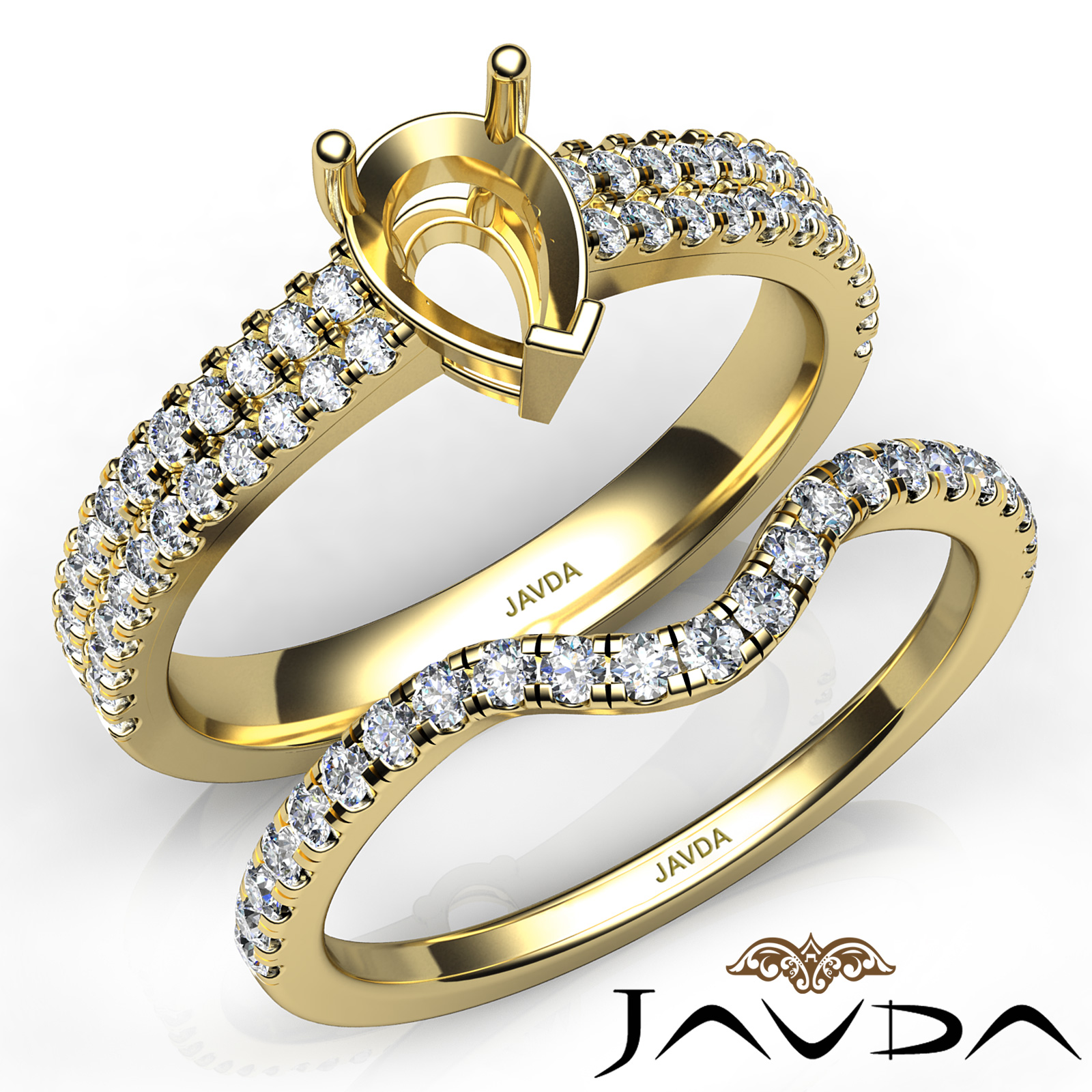 Diamond Engagement Ring Pear Semi Mount U Cut Bridal Set 18k Gold (0.8Ct. tw.)
