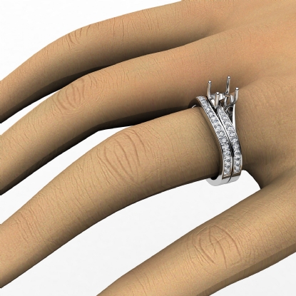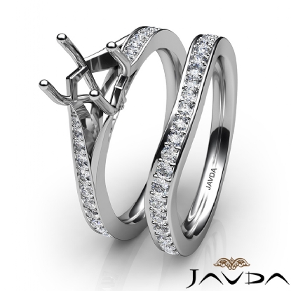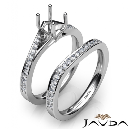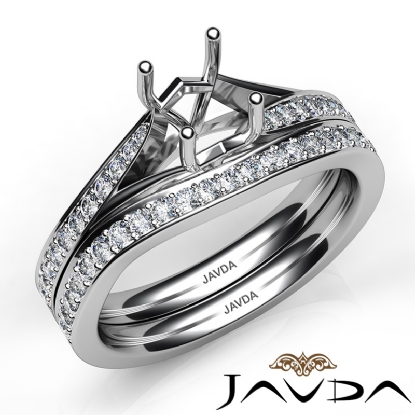 Pave Diamond Engagement Ring Cushion SemiMount Bridal Set Platinum (0.9Ct. tw.)